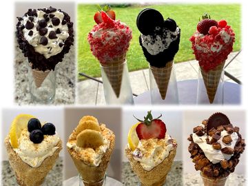 Everything in a yummy waffle cone but smaller for parties! Minimum of 12 per order; multiples of 6 thereafter